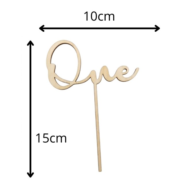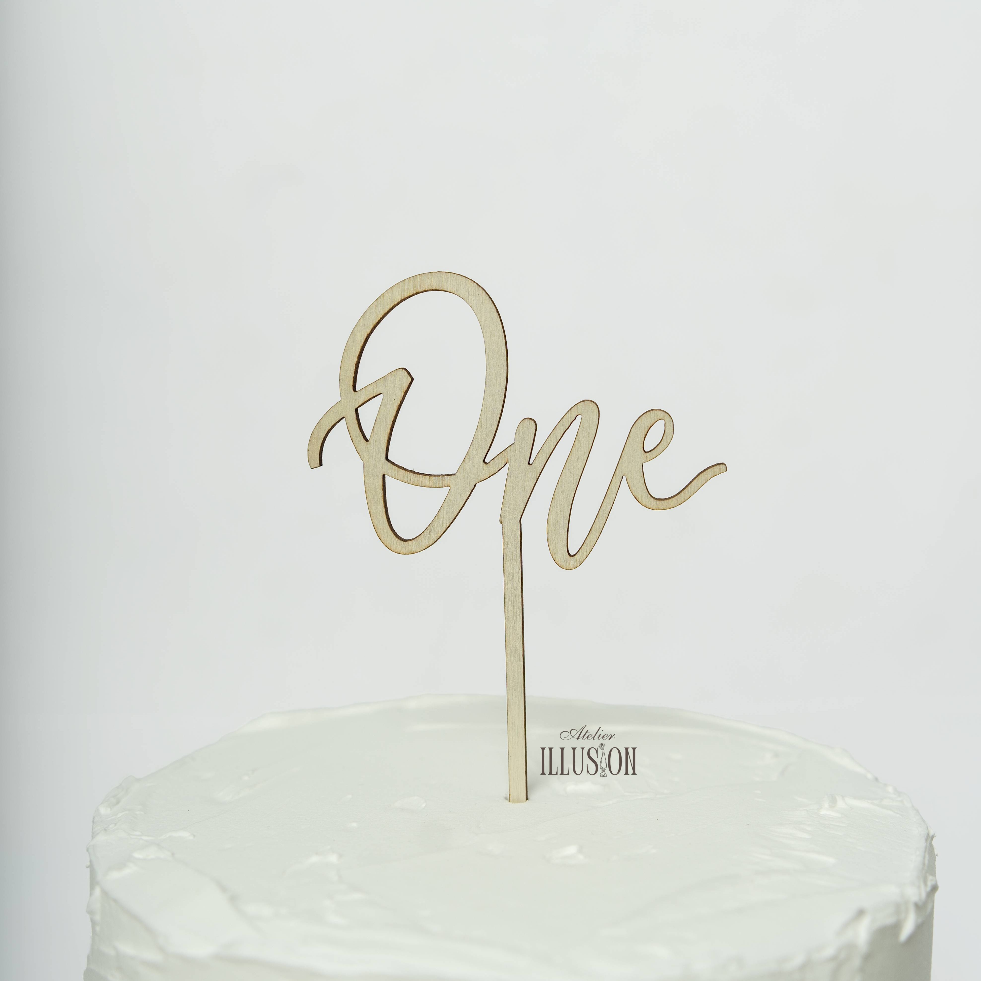Décoration en bois "One" pour vos gâteaux factices. Tous les gâteaux factices possèdent un trou sur le dessus afin d'y insérer le topper de votre choix.